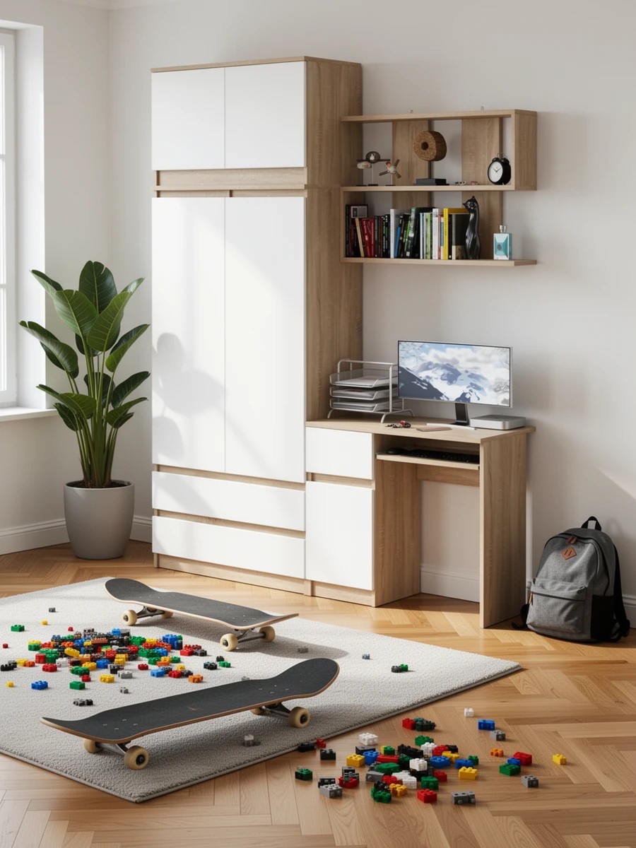 Выполнено в 5 цветах: белый, графит, графит/белый, дуб сонома и дуб сонома/белый.