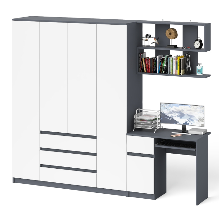 Отзывы о Столплит Четырёх-дверный шкаф-комод Мори МШ1600.1 с компьютерным столом МС-1 тумба слева и верхней полкой Графит/Белый