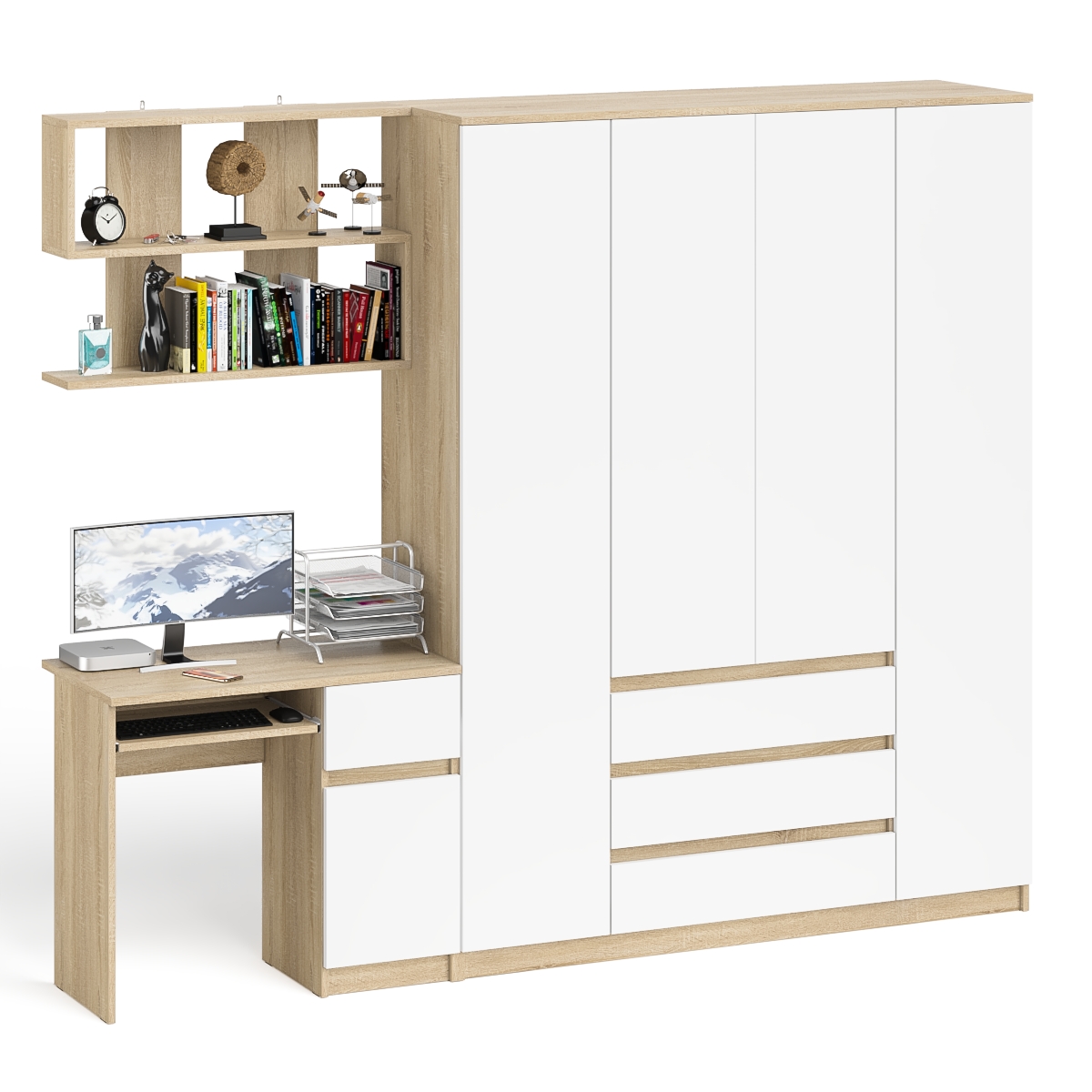 Выполнено в 5 цветах: белый, графит, графит/белый, дуб сонома и дуб сонома/белый.
