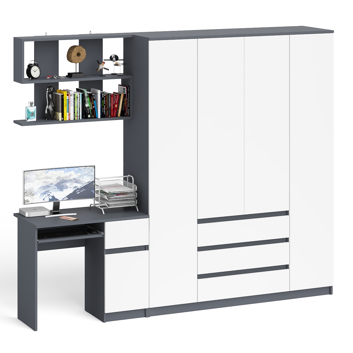 Отзывы о Столплит Стол компьютерный с тумбой справа с большим шкафом Мори МШ1600.1 и полкой открытой Графит/Белый
