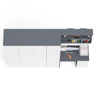 Комплектация включает стол Мори МС-1 правый компьютерный, шкаф-комод с тремя ящиками и четырьмя дверками Мори МШ1600.1 и навесную полку Плк-900.