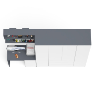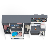 Шкаф-комод с тремя ящиками и четырьмя дверками Мори МШ1600.1 - вместительная система хранения. Оборудован тремя отделениями. Центральное сверху за распашными дверьми с тремя полками и снизу тремя выдвижными ящиками. По бокам расположены два отделения с горизонтальными штангами (2х372 мм.) для одежды на плечиках, антресольной полкой и нижней нишей в каждом. Открывание ящиков и малых дверей производится за счет пространства между планками и фасадами. Выдвижные ящики на роликовых направляющих L=400 мм. неполного выдвижения обеспечивают комфортную эксплуатацию. Открывание высоких створок дверей шкафа производится за счет системы Push-to-open - простым нажатием на фасад.