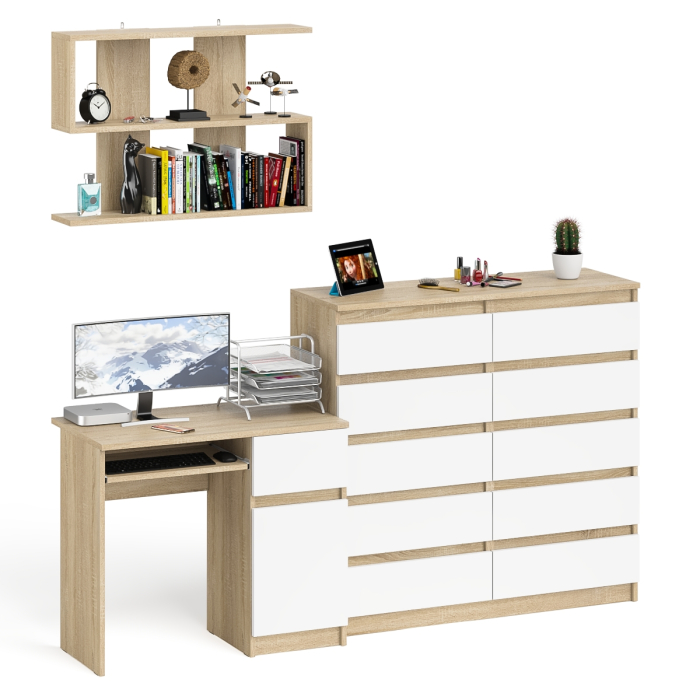 Выполнено в 5 цветах: белый, графит, графит/белый, дуб сонома и дуб сонома/белый.