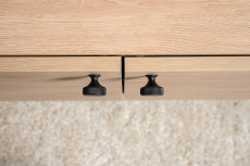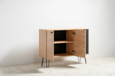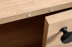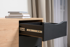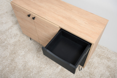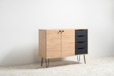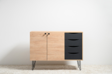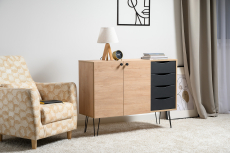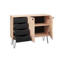 Конструкция комода сосотоит из 4-х выдвижных ящика и 2 распашные двери с нишами для хранения.