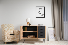Лаконичный и стильный комод Брюс на высоких металлических опорах будет уместен в интерьере современной гостиной, спальни, прихожей.