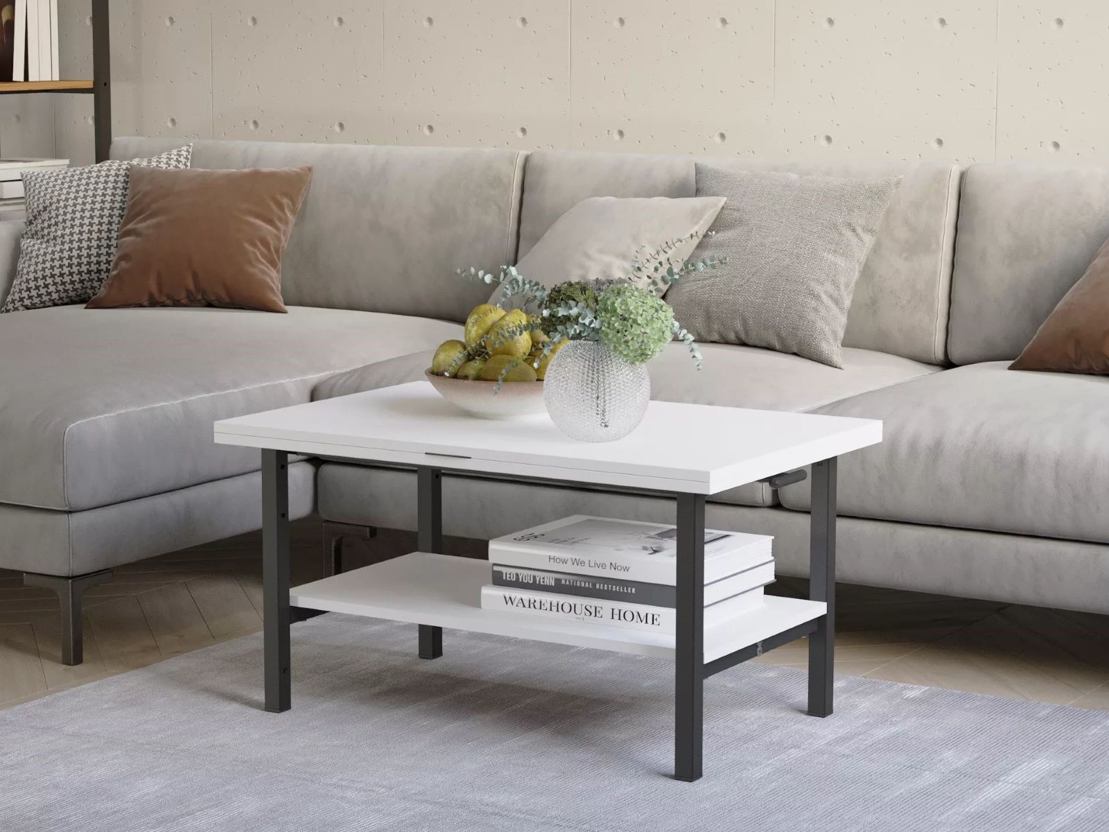 Такое функциональное решение идеально подойдет для небольших помещений, где важно эффективно использовать пространство. Стол журнальный может служить как обычным столом в гостиной, так и столиком приставным рядом с диваном или креслом. Его можно использовать для размещения напитков, книг, журналов или просто как элемент декора.