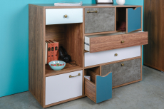Комод Вайс 10.104 — креативный подход к системе хранения. Эксклюзивный комод Вайс 10.104 необычен всем — стильным калейдоскопом цветов, оригинальным дизайном и комбинацией элементов. Конструкция комода Вайс 10.104 включает два закрытых распашной дверкой отделения, открытую нишу и шесть выдвижных ящиков. Удобное расположение составляющих комод деталей, их различная форма и вместимость, помогают организовать идеальный порядок хранения. Пропорции комода Вайс 10.104 расчитаны для помещения любого размера - высокий, но узкий (всего 40 см.) комод — ещё и практичная подставка. В гостиной и детской — комод заменит тумбу под телевизор, в спальне и прихожей — крышка комода послужит отличным подзеркальником. Интересный микс цветов, занятная форма ручек эстетично украшают комод Вайс 10.104, дают ему шансы занять достойное место в интерьере. Корпус и фасады комода Вайс 10.104 выполнены из экологически чистой ламинированной ДСП 16 и 22 мм., торцы окромлены ПХВ плёнкой. Распашные двери комода на четырёхшарнирных петлях без доводчиков, выдвижные ящики - фолдинги на шариковых направляющих. Комод Вайс 10.104 поставляется в разобранном виде, с комплектом фурнитуры, упакованный в 4-х слойный гофрокартон. Сертификация комода Вайс 10.104 на соответствие требованиям ГОСТ и санитарно-эпидемиологическим нормам подтверждена документально.