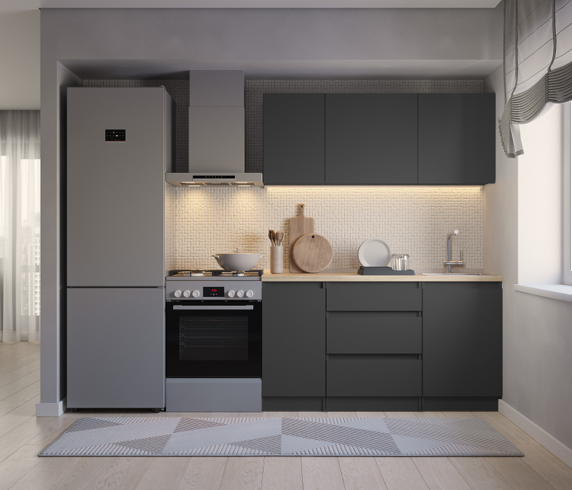 Обратите внимание, что столешница, стеновая панель, мойка и смеситель не входят в комплектацию кухни Леон и приобретаются отдельно. Это позволяет вам выбрать идеальные аксессуары и элементы для создания индивидуального дизайна вашей кухни.