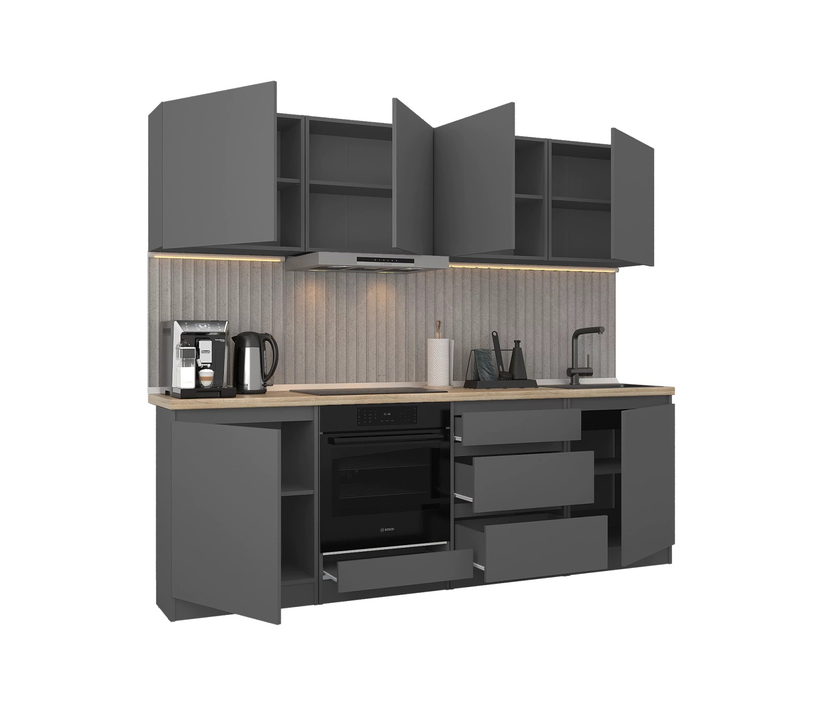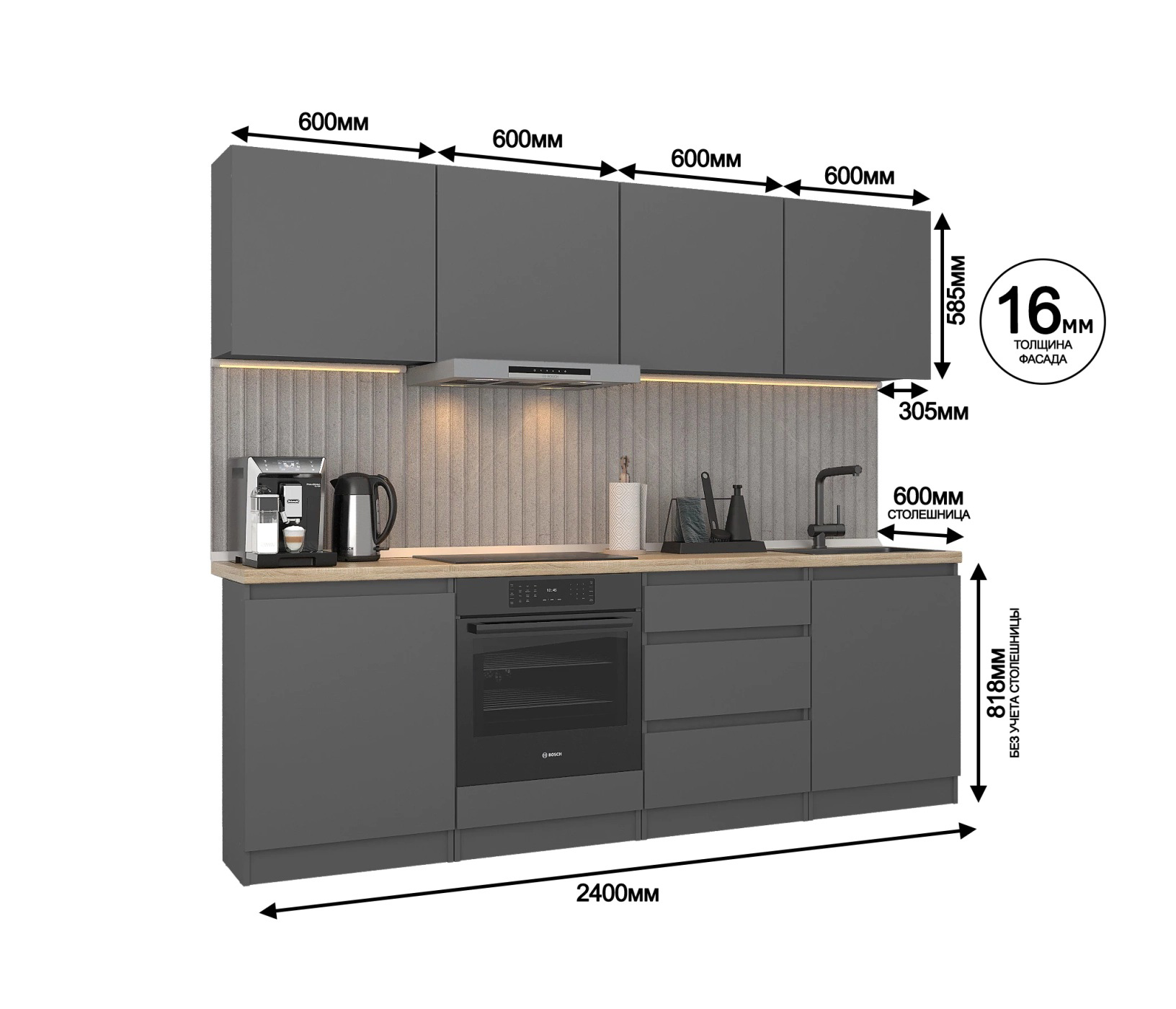 - Кухонный гарнитур Леон прямой 240 см, диамант серый