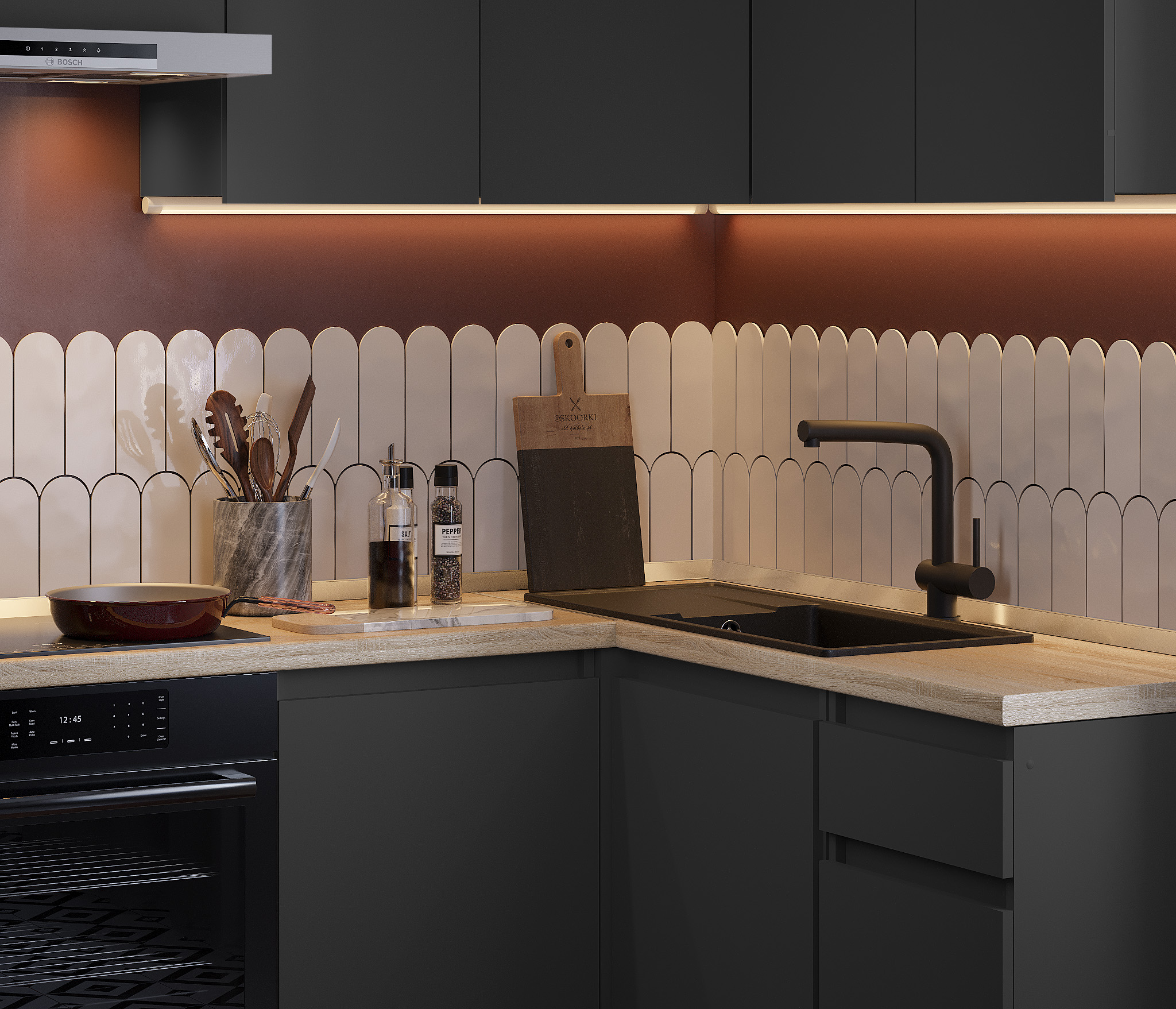 Обратите внимание, что столешница, стеновая панель, мойка и смеситель не входят в комплектацию кухни Леон и приобретаются отдельно. Это позволяет вам выбрать идеальные аксессуары и элементы для создания индивидуального дизайна вашей кухни.