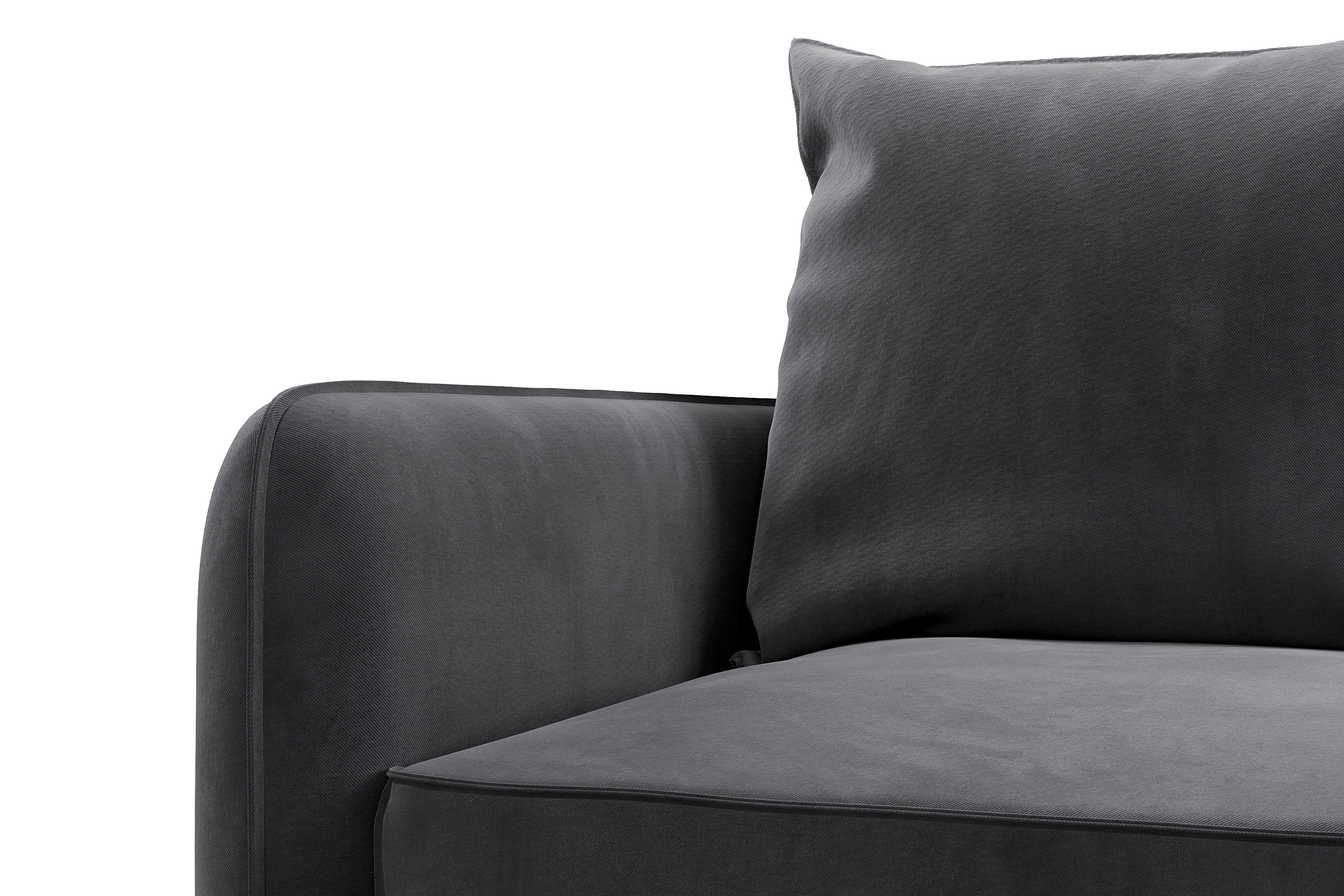 Обивка дивана - мягкий бархатистый премиальный велюр. Тонкая динамика узора обивки создаёт в пространстве ощущение лёгкости и движения. Технология Waterproof делает ткань устойчивой к влаге, и благодаря этому обивка долговечна и проста в уходе.