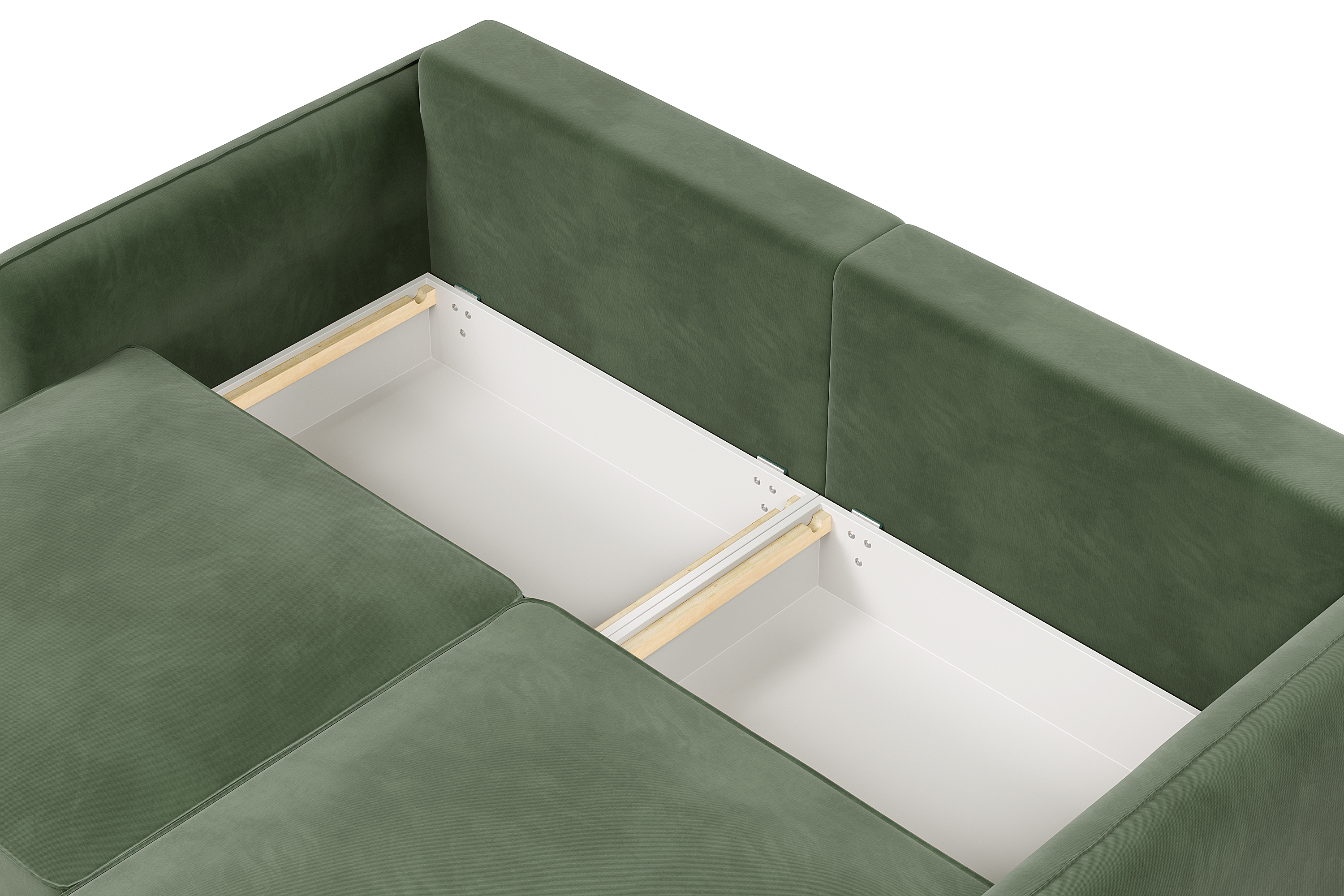 Под сиденьем предусмотрен вместительный бельевой ящик, в который можно легко убрать несколько одеял и подушек.