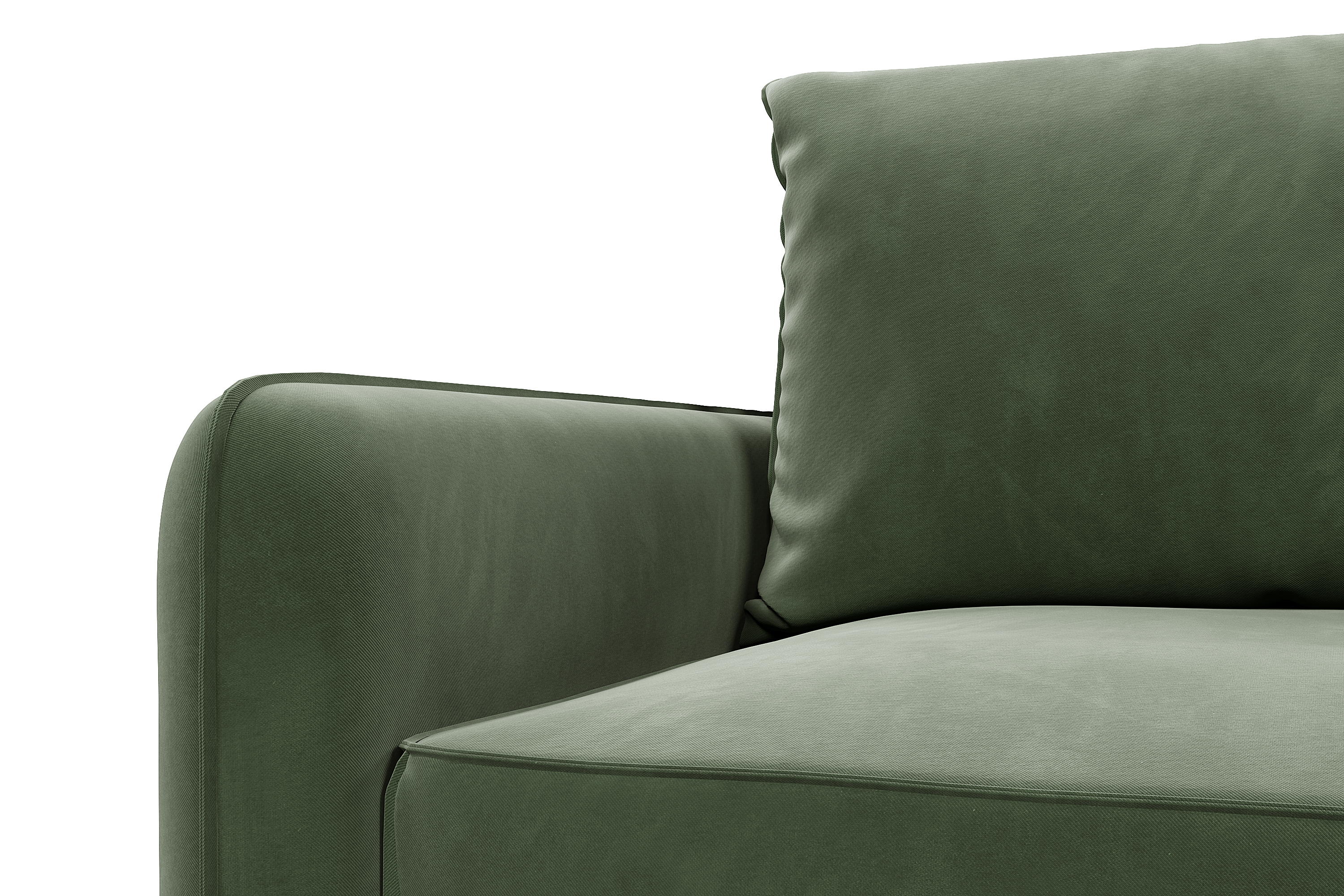 Обивка дивана - мягкий бархатистый премиальный велюр. Тонкая динамика узора обивки создаёт в пространстве ощущение лёгкости и движения. Технология Waterproof делает ткань устойчивой к влаге, и благодаря этому обивка долговечна и проста в уходе.