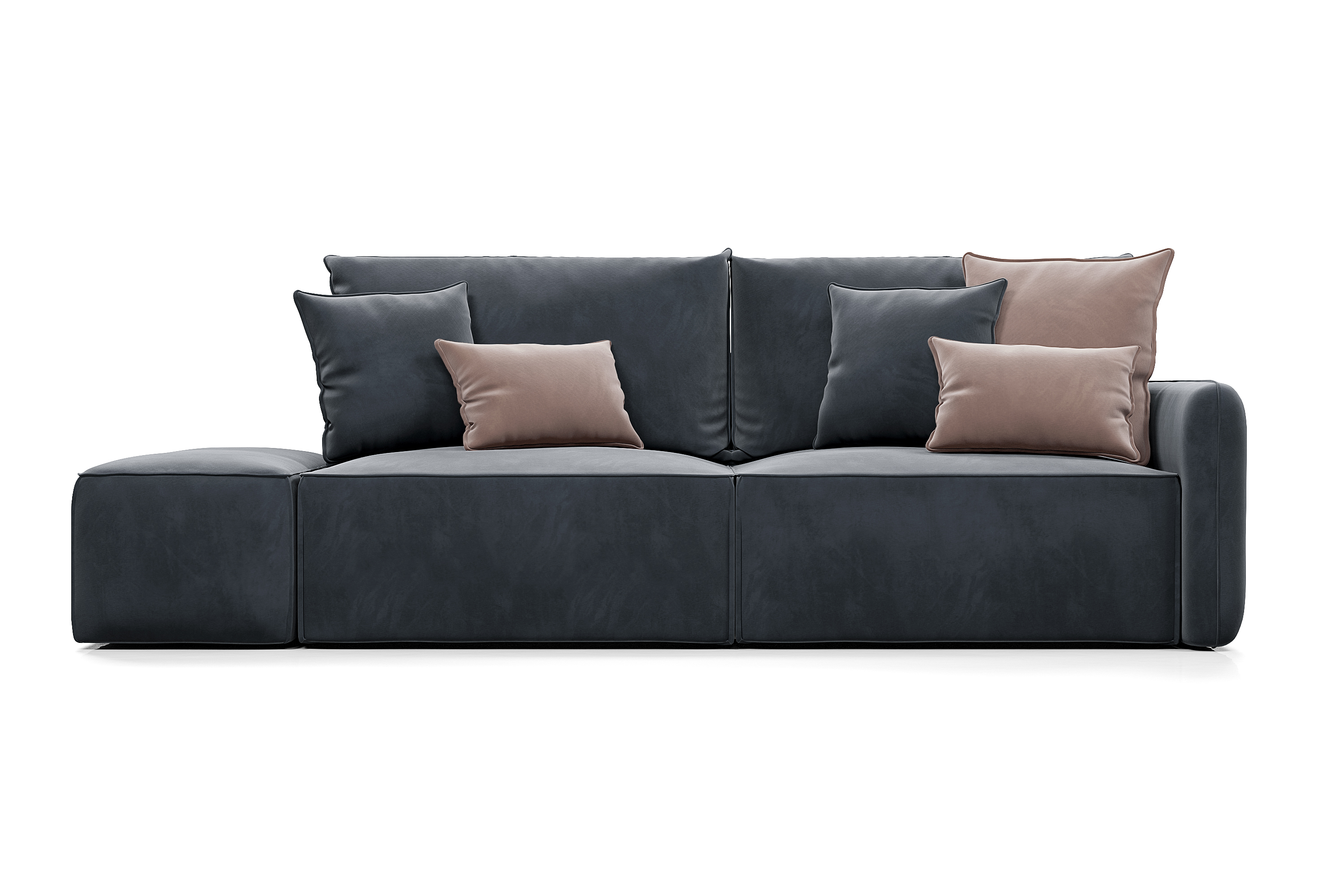 Обивка дивана - мягкий бархатистый премиальный велюр. Тонкая динамика узора обивки создаёт в пространстве ощущение лёгкости и движения. Технология Waterproof делает ткань устойчивой к влаге, и благодаря этому обивка долговечна и проста в уходе.