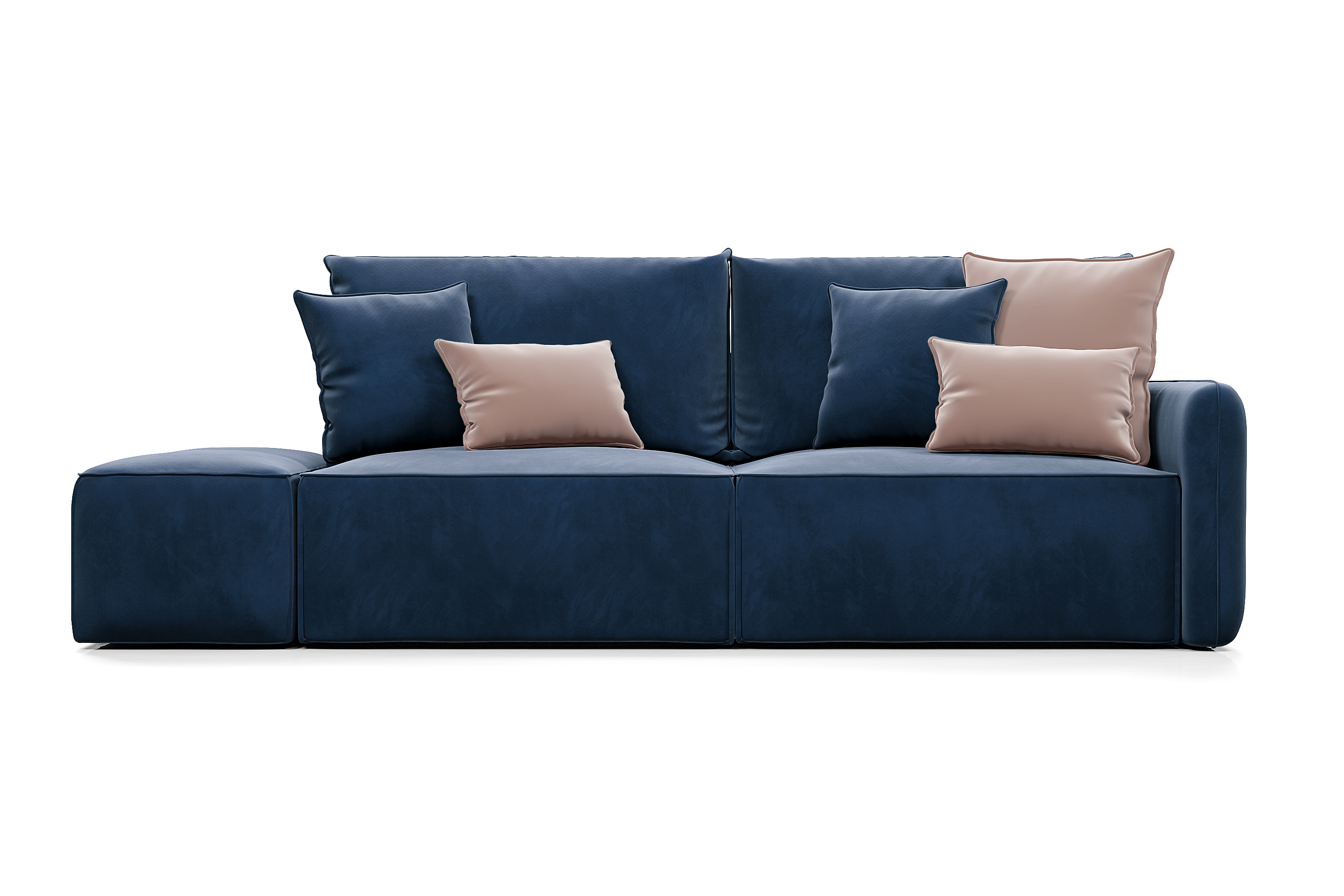 Обивка дивана - мягкий бархатистый премиальный велюр. Тонкая динамика узора обивки создаёт в пространстве ощущение лёгкости и движения. Технология Waterproof делает ткань устойчивой к влаге, и благодаря этому обивка долговечна и проста в уходе.