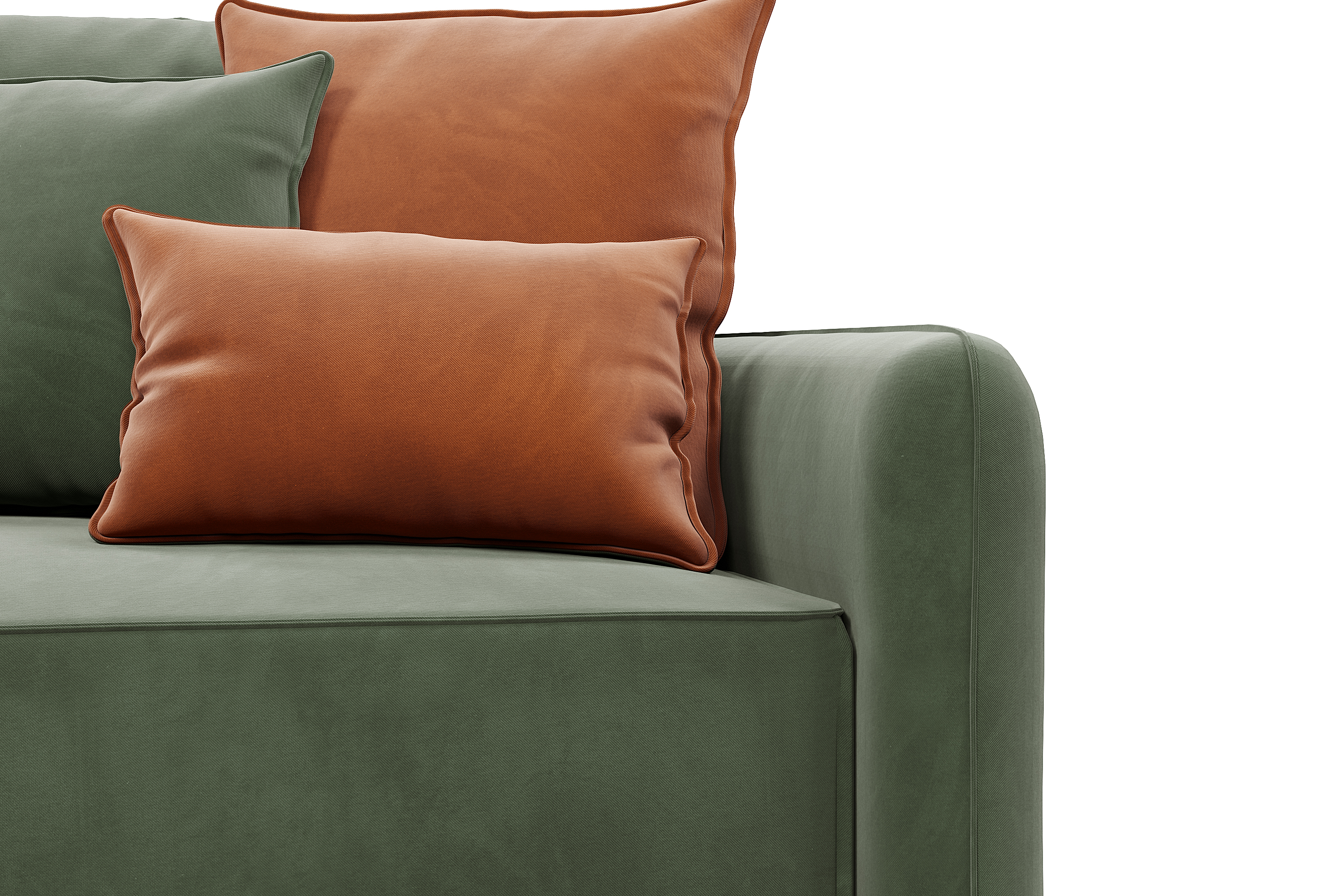 Обивка дивана - мягкий бархатистый премиальный велюр. Тонкая динамика узора обивки создаёт в пространстве ощущение лёгкости и движения. Технология Waterproof делает ткань устойчивой к влаге, и благодаря этому обивка долговечна и проста в уходе.