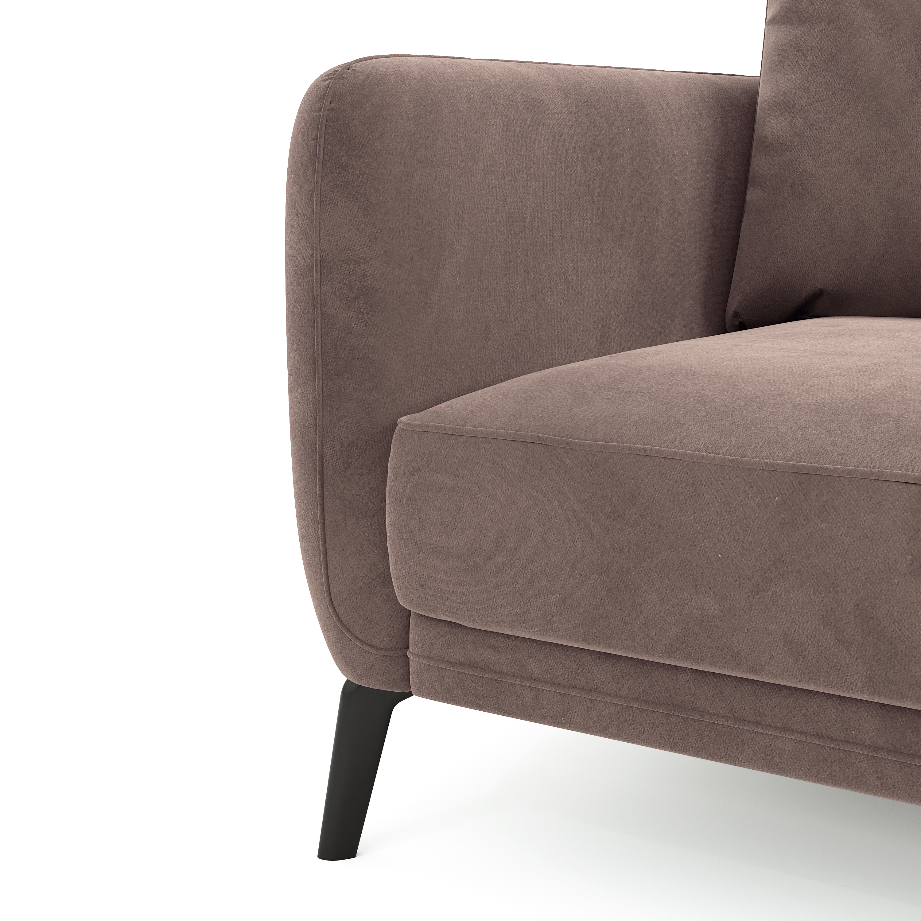Особенности этой модели — удобная мягкая спинка, выполненная из основной ткани и подлокотники с красивой отстрочкой и кантом. Съемные чехлы на подушках легко чистить. Высокие ножки дивана позволяют роботу-пылесосу без препятствий выполнять уборку.