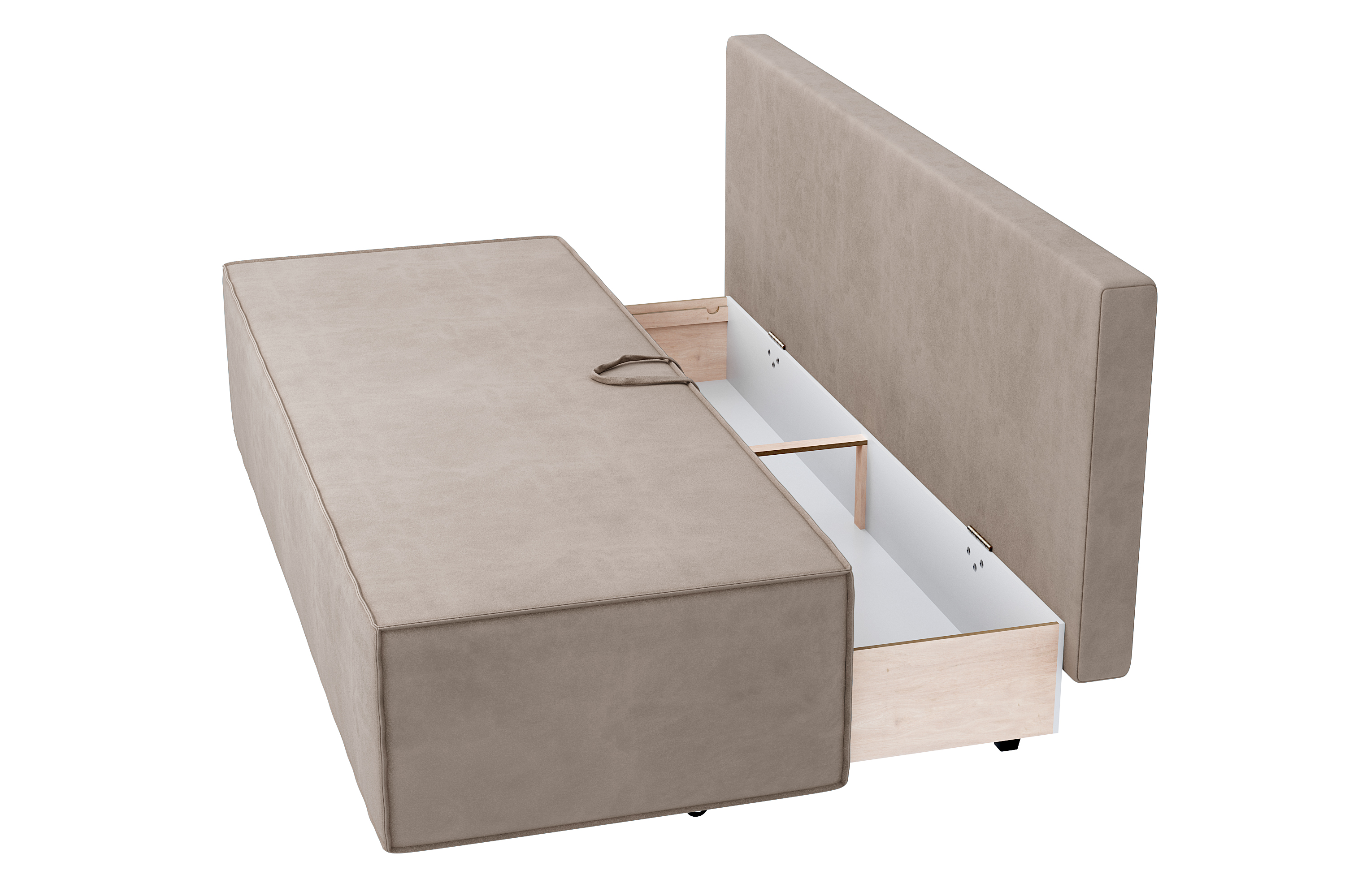 В результате трансформации получается ровное, широкое и удобное спальное место. Чтобы разложить диван, достаточно выдвинуть на себя сиденье и опустить спинку.