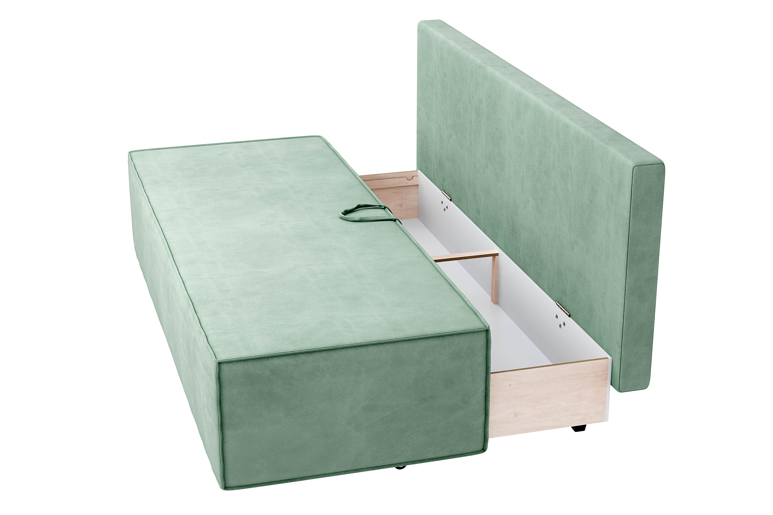В результате трансформации получается ровное, широкое и удобное спальное место. Чтобы разложить диван, достаточно выдвинуть на себя сиденье и опустить спинку.