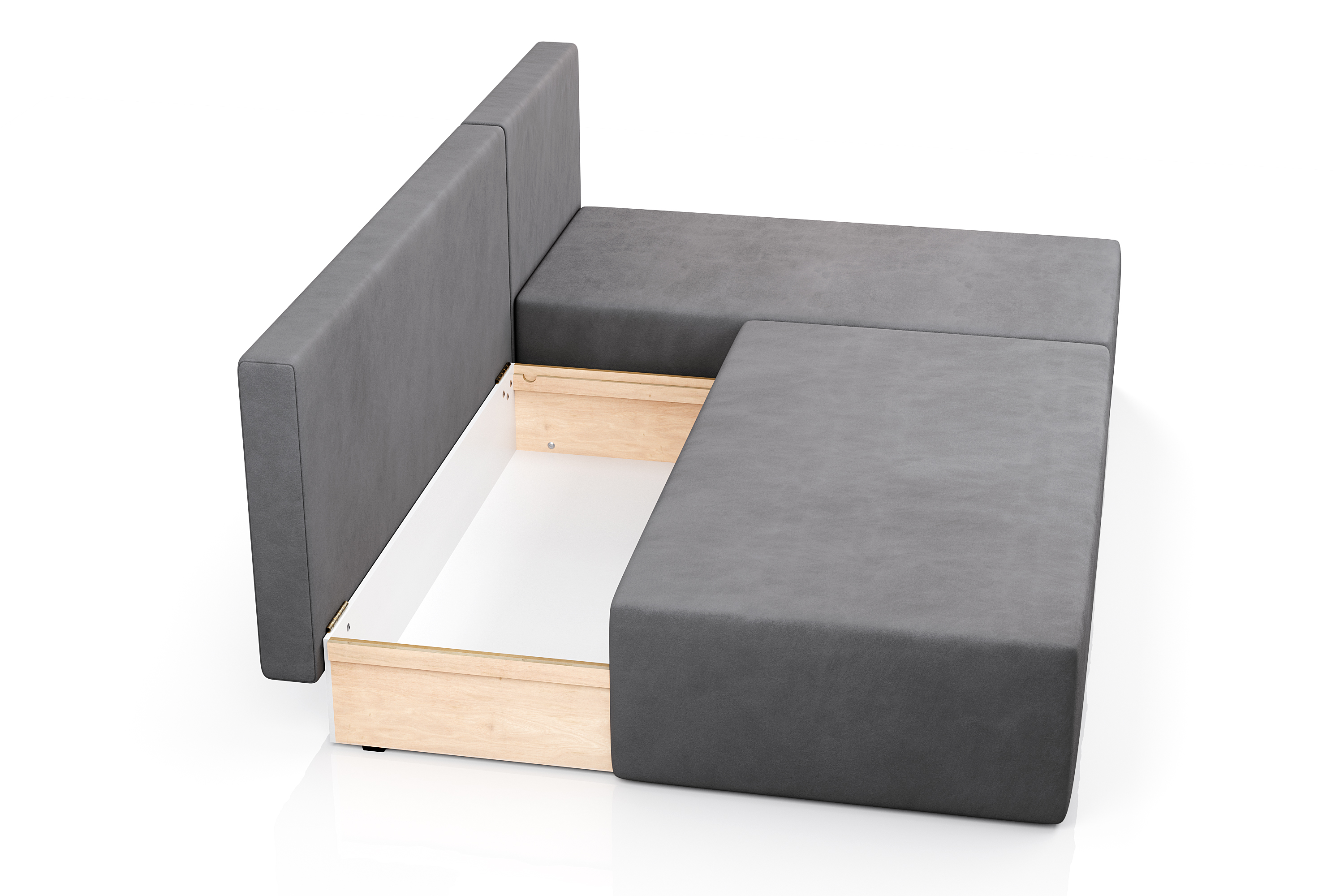 В результате трансформации получается ровное, широкое и удобное спальное место. Чтобы разложить диван, достаточно выдвинуть на себя сиденье и опустить спинку.