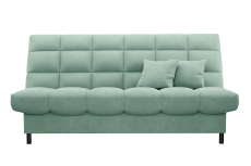 Обивка дивана - мягкий бархатистый велюр. Это тактильно приятная и очень практичная ткань. Всю мягкую поверхность модели украшает строчка прямоугольниками.