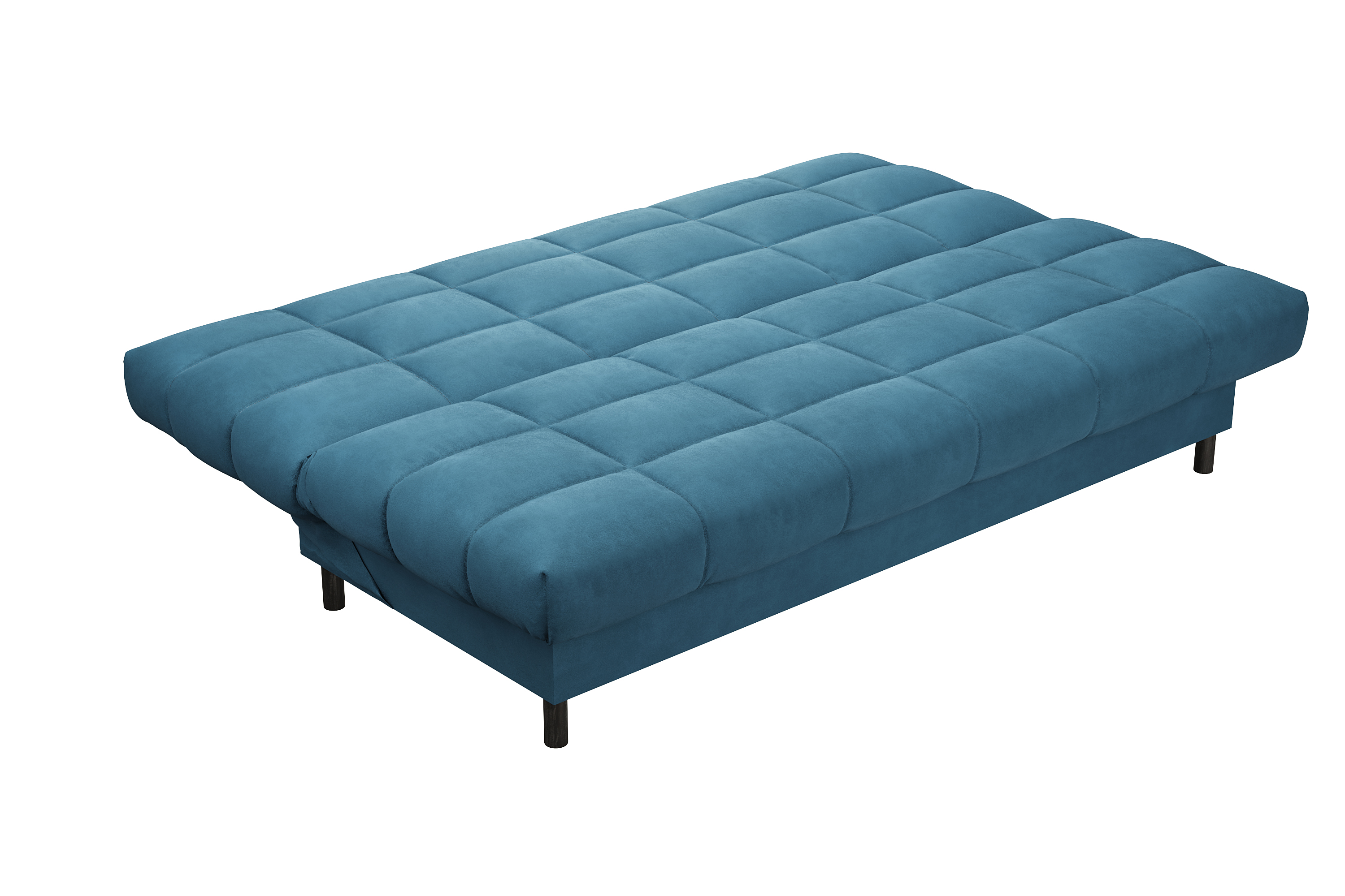 Обивка дивана - мягкий бархатистый велюр. Это тактильно приятная и очень практичная ткань. Всю мягкую поверхность модели украшает строчка прямоугольниками.