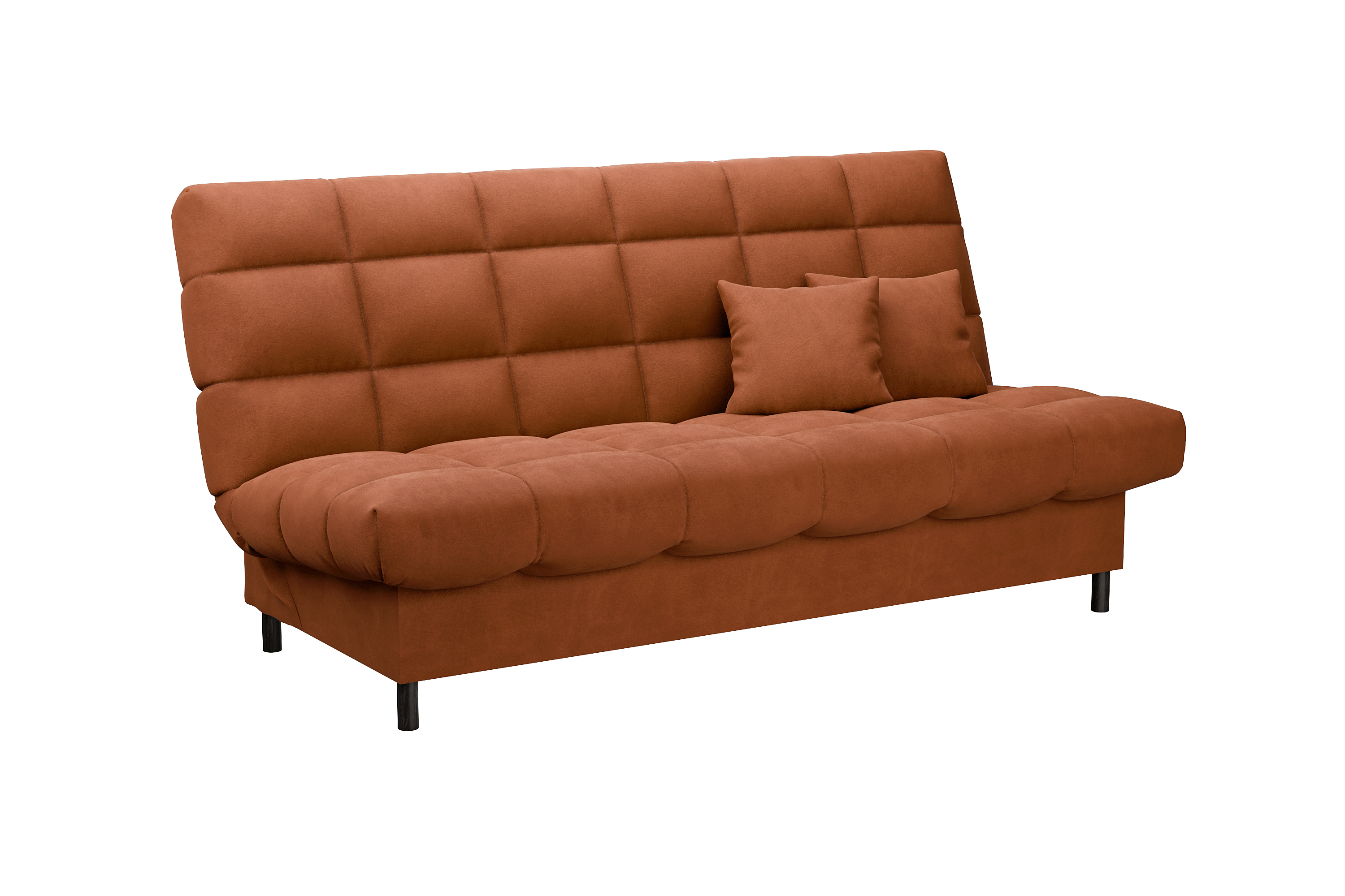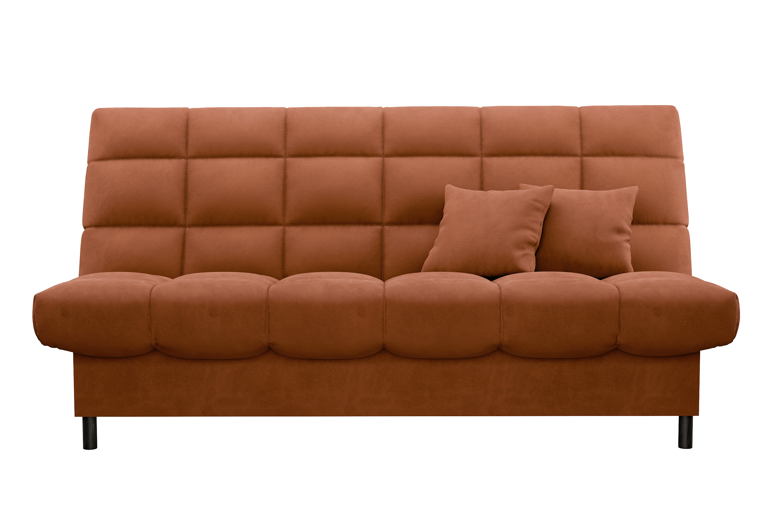 Обивка дивана - мягкий бархатистый велюр. Это тактильно приятная и очень практичная ткань. Всю мягкую поверхность модели украшает строчка прямоугольниками.