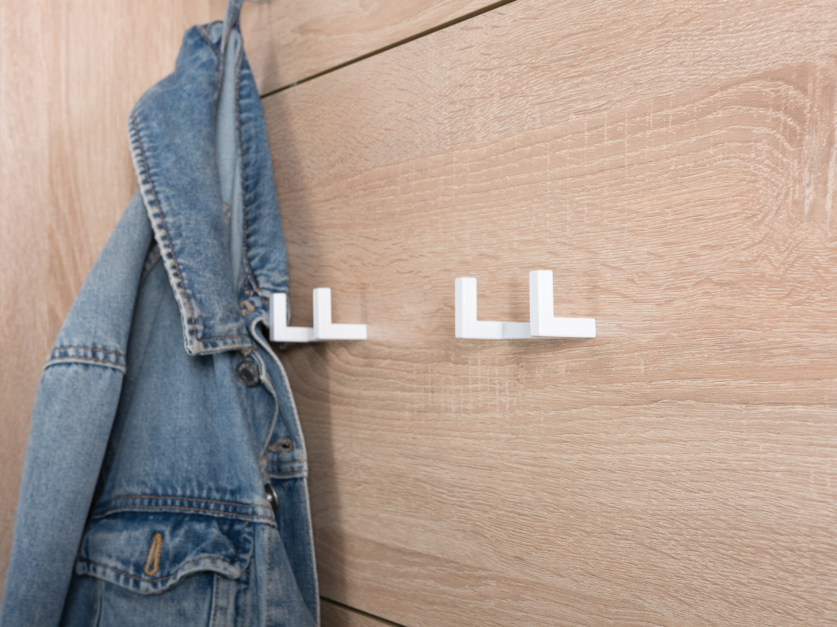 Конструкция с гардеробной полочкой и 5 металлическими крючками для одежды.