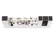 Каждая полка Сидней 15.57 (в комплектации 2 полки) представляет из себя широкую нишу, разделенную на 3 ассиметричных отделения. Имеет универсальную сборку - разделители внутри полки можно установить как слева, так и справа.