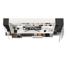 Каждая полка Сидней 15.57 (в комплектации 4 полки) представляет из себя широкую нишу, разделенную на 3 ассиметричных отделения. Имеет универсальную сборку - разделители внутри полки можно установить как слева, так и справа.