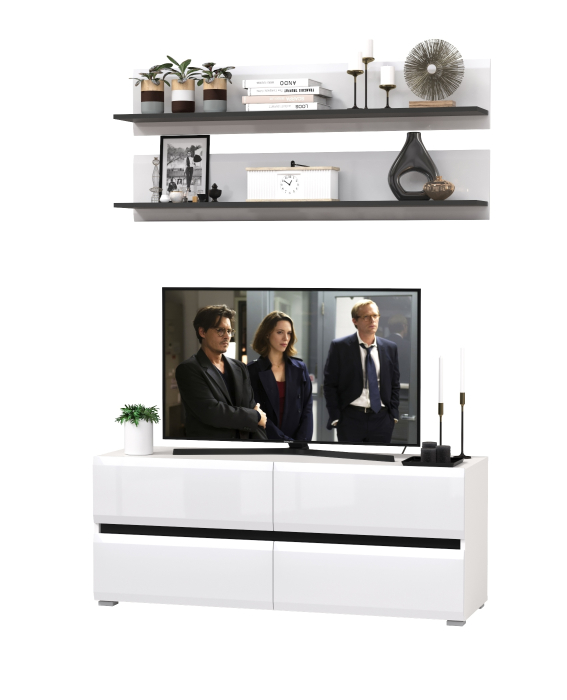 Две открытых полочки с тумбой для аппаратуры Сидней - современное, модное и стильное решение для гостиной.