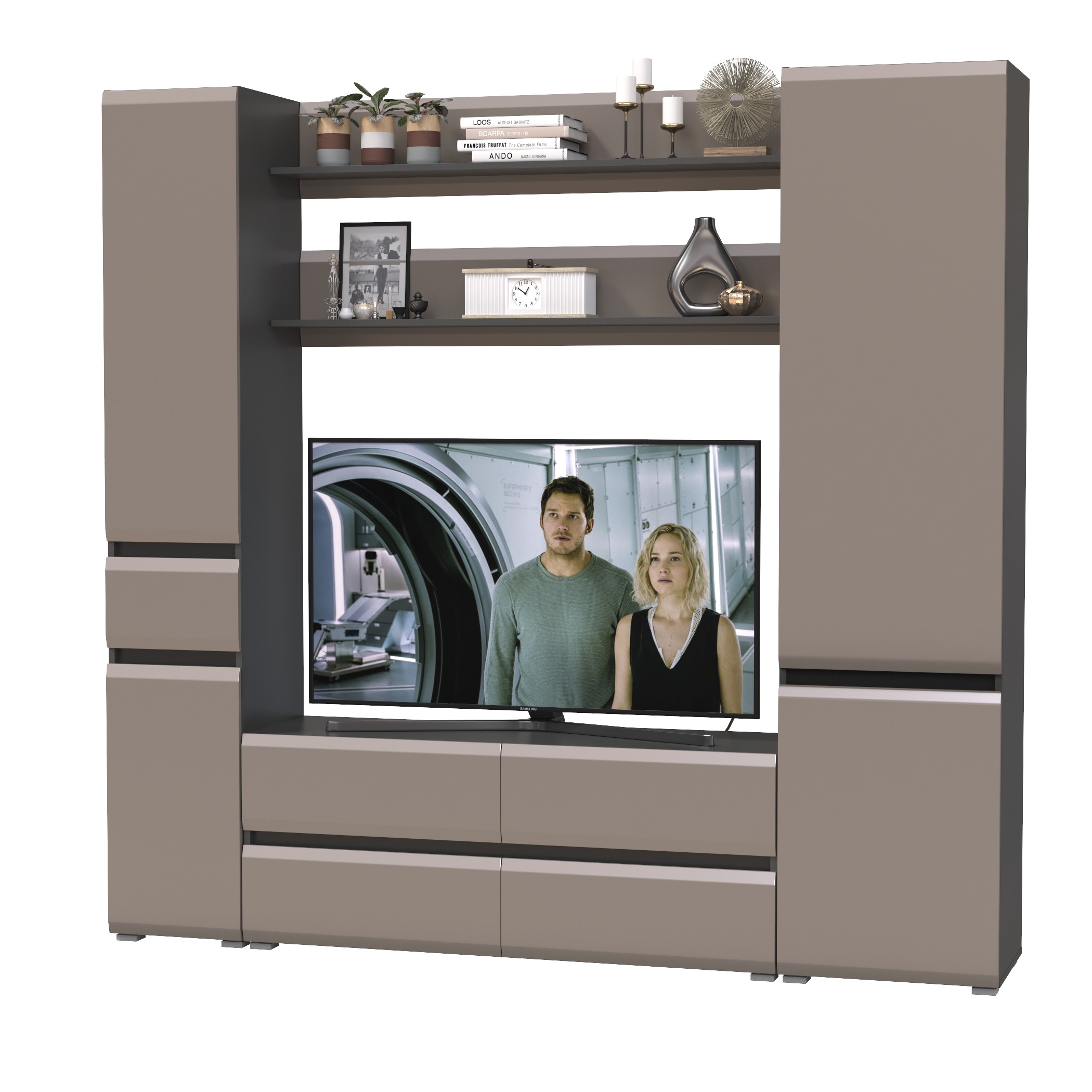 Отзывы о Столплит ТВ-тумба с двумя полочками и шкафом с ящиком и шкафом с полками внутри Сидней Антрацит/Капучино