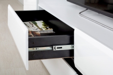 Фасады могут открываться за край (ящики), либо нажатием (дверцы), с помощью механизма Push-to-Open, позволяющий отказаться от использования ручек. Распашные фасады оснащены доводчиками, что обеспечивает плавное закрывание и исключает удар о корпус. Универсальная сборка - сторону открывания дверей, Вы определяете при сборке.