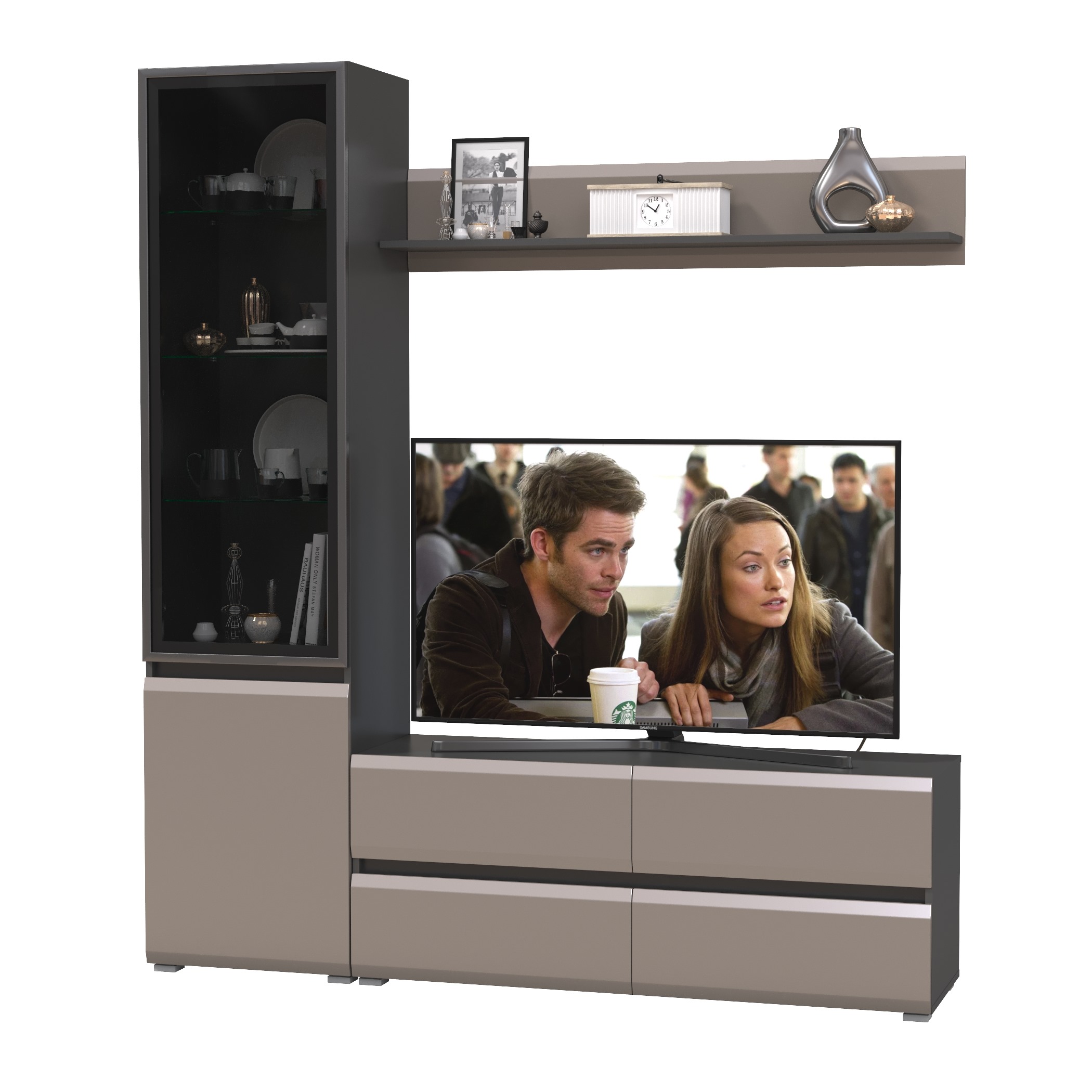 Отзывы о Столплит Шкаф-витрина с навесной полочкой и тумба для ТВ Сидней Антрацит/Капучино