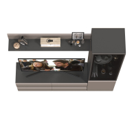Комплектация состоит из тумбы под ТВ Сидней 13.63, полки открытой Сидней 16.486 и шкафа с фасадами стекло Сидней 13.201.