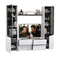 Отзывы о Столплит Стенка для гостиной с двумя стеклянными дверками Сидней № 49 Белый глянец/Черный