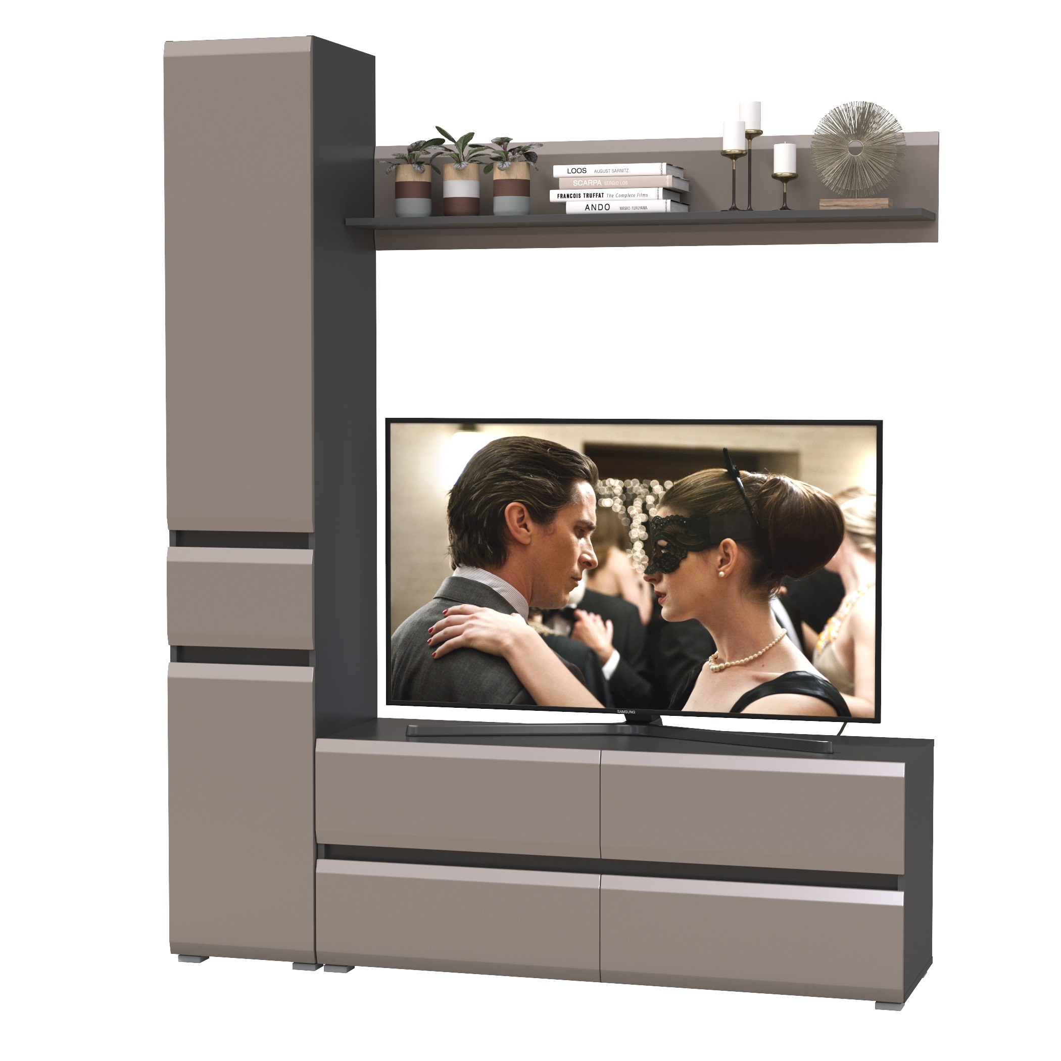 Отзывы о Столплит Тумба для ТВ с пеналом с ящиком и открытой полочкой Сидней Антрацит/Капучино