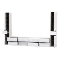 Тумба под ТВ состоит из двух тумб Сидней 13.63 объединенных в единый блок. Оснащена 8 выдвижными ящиками на шариковых направляющих, что обеспечивает легкое открывание.