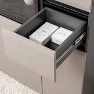 Фасады могут открываться за край (ящики), либо нажатием (дверцы), с помощью механизма Push-to-Open, позволяющий отказаться от использования ручек. Распашные фасады оснащены доводчиками, что обеспечивает плавное закрывание и исключает удар о корпус. Универсальная сборка - сторону открывания дверей, Вы определяете при сборке.