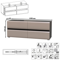 Тумба под ТВ состоит из двух тумб Сидней 13.63 объединенных в единый блок. Оснащена 8 выдвижными ящиками на шариковых направляющих, что обеспечивает легкое открывание.