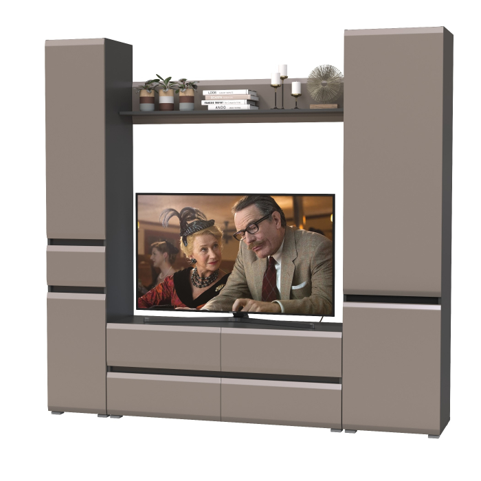 Отзывы о Столплит Тумба для ТВ Сидней в комплекте с полочкой шкафом с ящиком и шкафом с дверкой Антрацит/Капучино