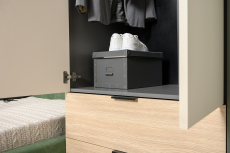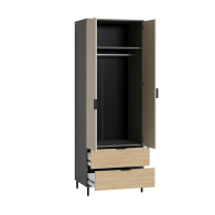 Двухдверный шкаф с 2-мя выдвижными ящиками. Ящики устанавливаются на направляющие полного выдвижения.
