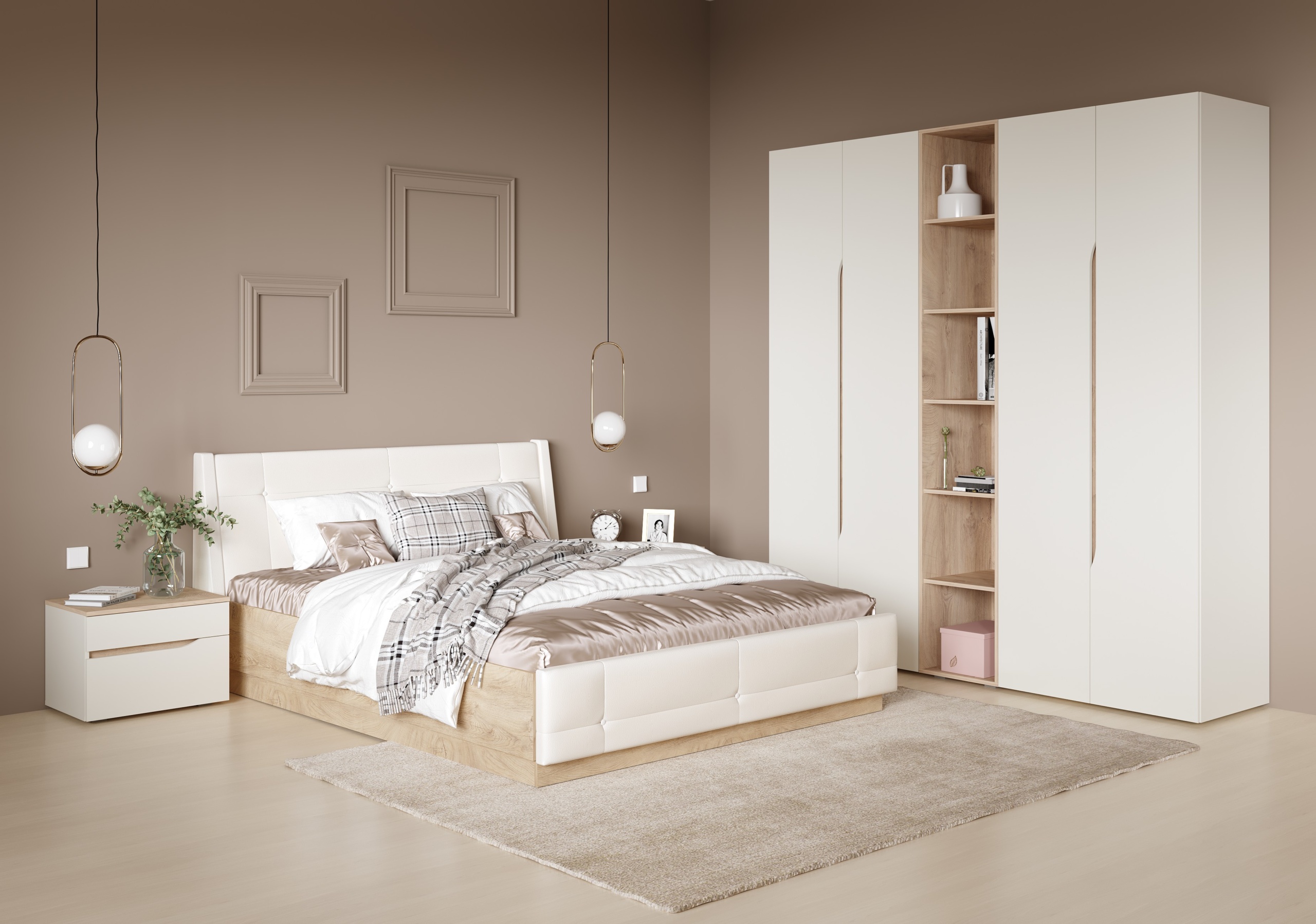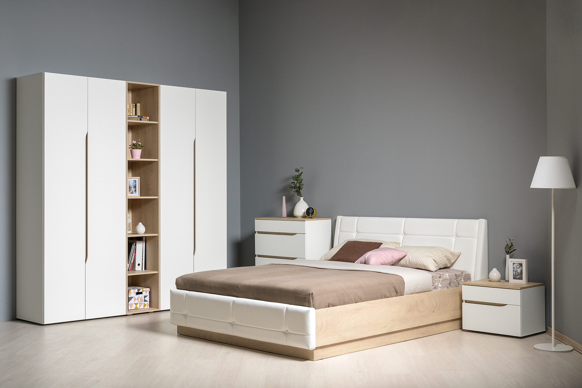 Стеллаж и шкафы могут быть собраны в единую компоновку, давая возможность собрать в интерьере стильную шкафную группу.