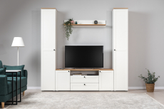 Шкаф-пенал Остин 13.227, белая шагрень, дуб золотой крафт Код R0000302070