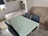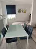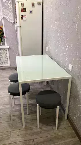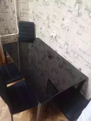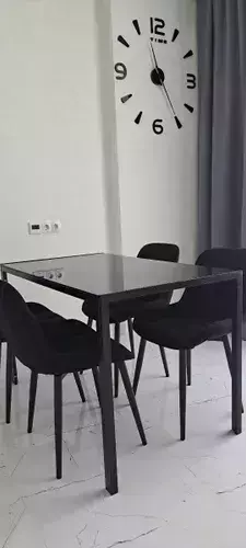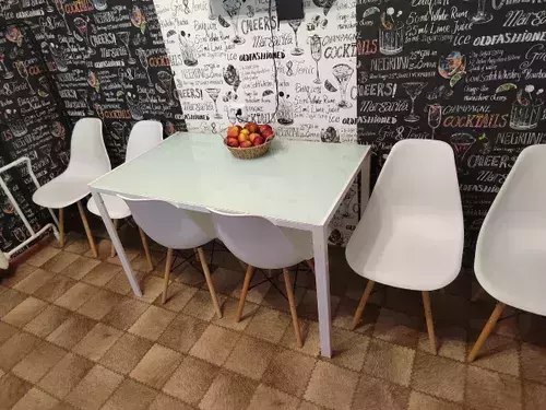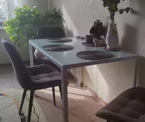 Столешница выполнена из прочного закалённого стекла толщиной 6 мм, что обеспечивает устойчивость к механическим повреждениям и долговечность. Её размеры 120х70 см идеально подходят для семейных обедов или встреч с друзьями. Фиксация столешницы осуществляется с помощью присосок, что обеспечивает её устойчивость и безопасность в использовании. По краям столешница ограничена металлическим профилем, который соединяется с ножками, подчеркивая современный дизайн. Максимальная нагрузка на столешницу составляет 80 кг, что гарантирует его долговечность и удобство для размещения различных предметов, включая посуду и декор.