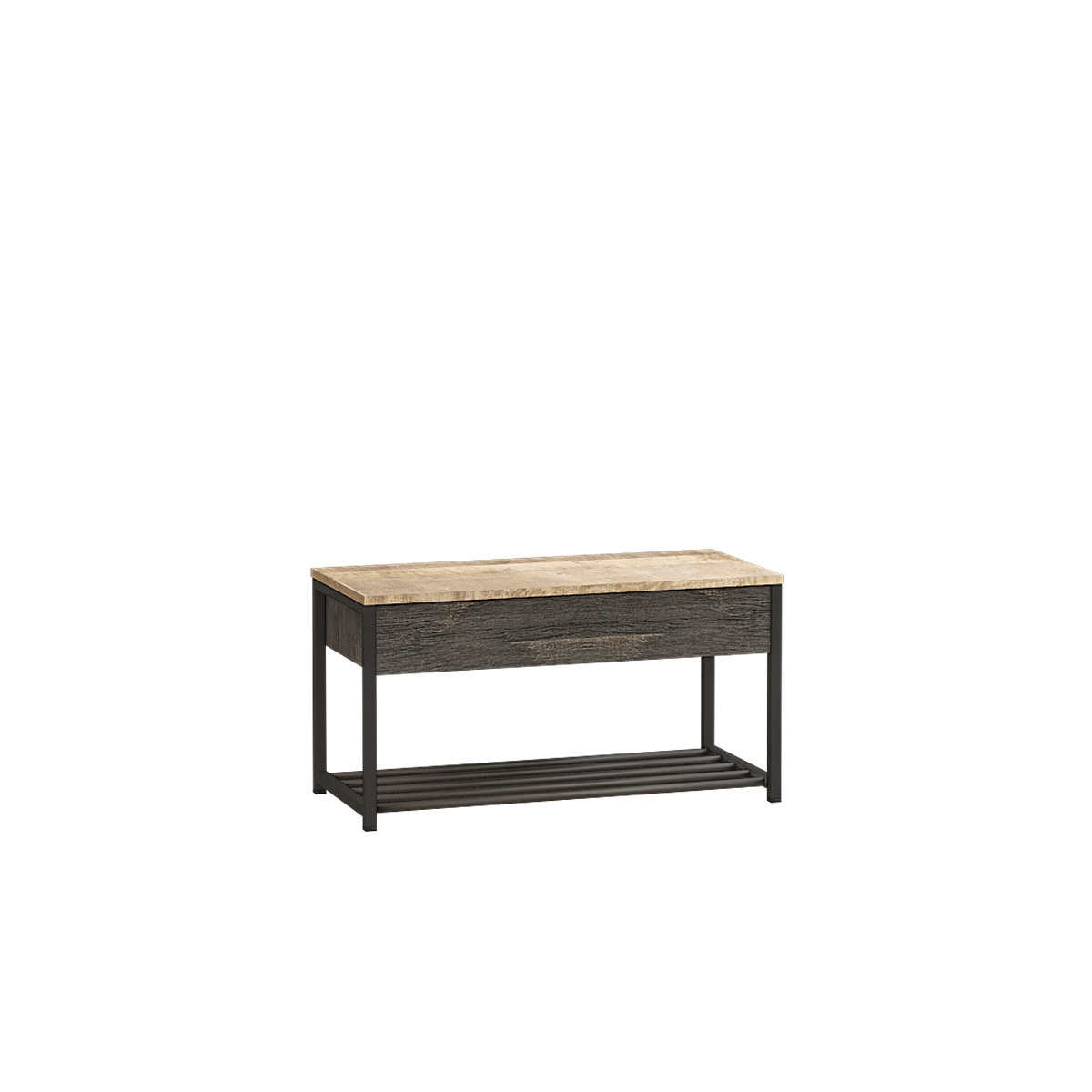 Лицевая фурнитура с тем же покрытием придаёт мебели индустриальную эстетику.