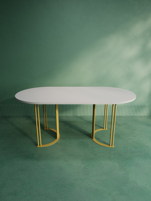 Стол овальный обеденный с золотым металлическим подстольем VIOLUR 180 (Белый)