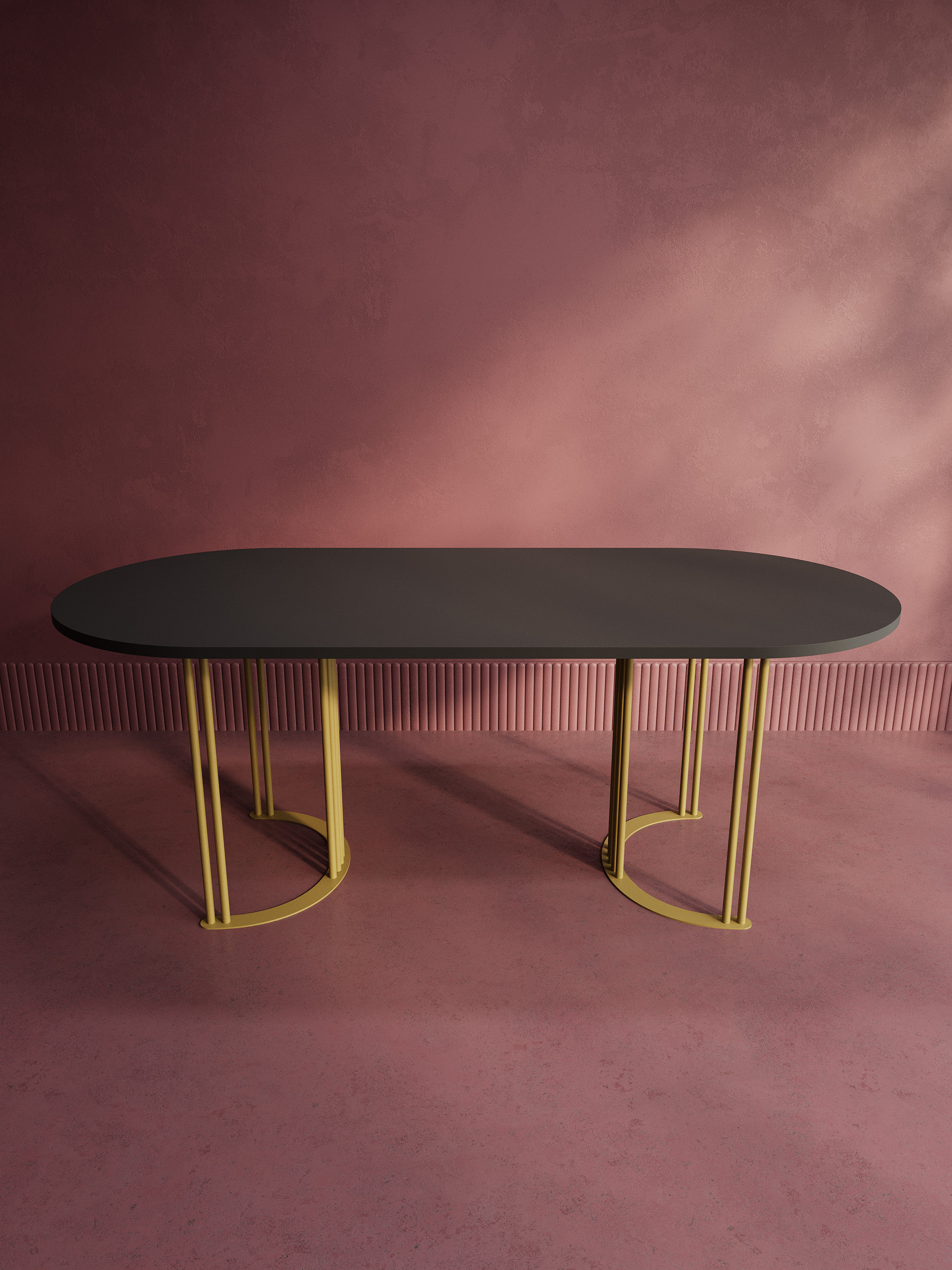 Стол овальный обеденный с золотым металлическим подстольем VIOLUR 200 (Черный)