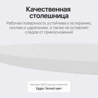 Подстолье, состоящее из двух ножек-полумесяцев, изготовлено из металла (высококачественная сталь) с устойчивой (двойной) порошковой окраской. Столешница выполнена из ЛДСП высокого качества Egger. Толщина столешницы - 25 мм.