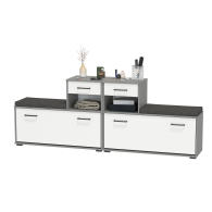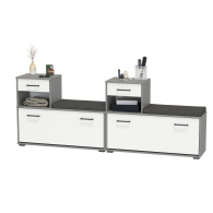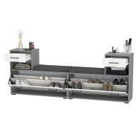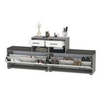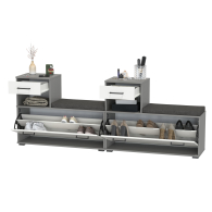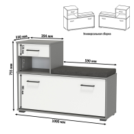 Обувницы спроектированы с учётом максимального удобства. Мягкие сиденья делают процесс обувания комфортным, особенно для малышей, а выдвижные ящики станут идеальным местом для хранения ключей и мелочей. Основной отсек, скрытый за откидной дверцей каждой обувницы, вмещает до восьми пар сезонной обуви, что делает его отличным выбором для семьи с детьми. Фасады оборудованы лаконичными ручками, выполненными в форме удлиненных тонких прямоугольников, без использования декора. Ручку приятно брать, ею легко и удобно открывать фасады. Благодаря универсальной сборке, обувницы можно легко адаптировать под новый дизайн интерьера, обновляя стиль вашей прихожей в соответствии с вашими предпочтениями.
